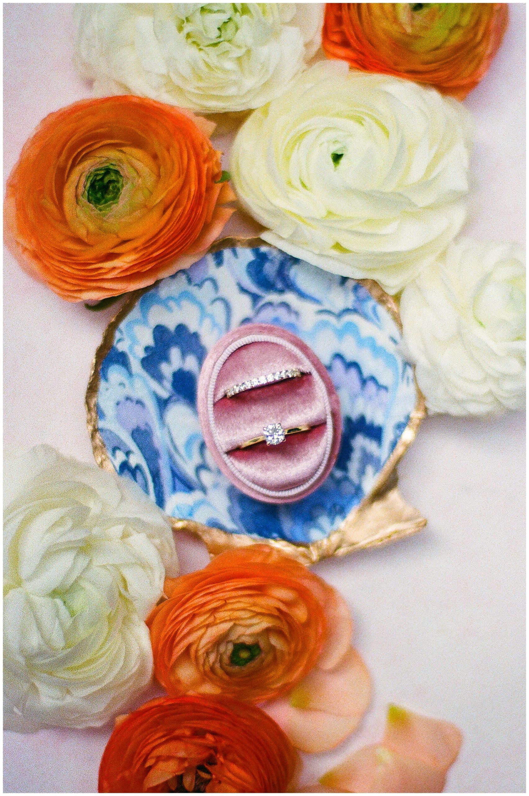 Kaitlyn and her bridesmaids were stunning in blue and green chiffon gowns, mixing solid hues with patterned designs for a modern, feminine, and romantic look. Their bouquets, designed by Haven Florals, tied everything together with a palette of muted fall tones and natural textures.