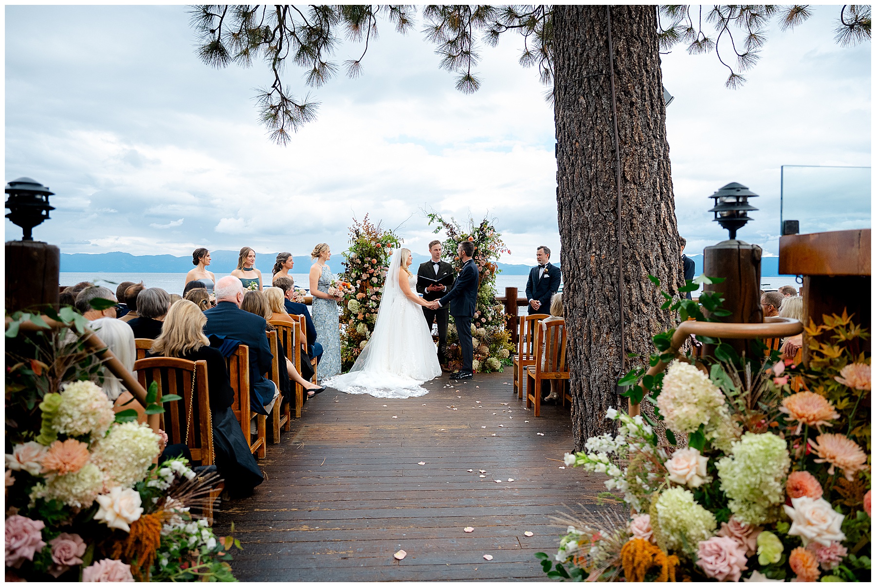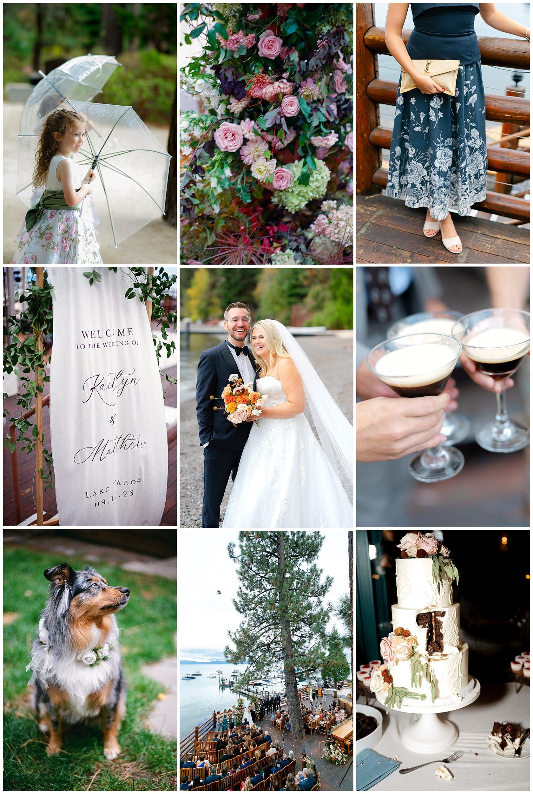 Matt and Kaitlyn’s wedding at Sunnyside on the West Shore of Lake Tahoe was the perfect blend of romance, nature, and timeless style. As a wedding photographer in the Lake Tahoe area, I couldn’t have imagined a more dreamy setting to document their “I dos.” Even with a light drizzle in the air, the day felt like a lakeside fairytale — full of intentional details, soft fall tones, and breathtaking views of the Sierra Mountains and Lake Tahoe.