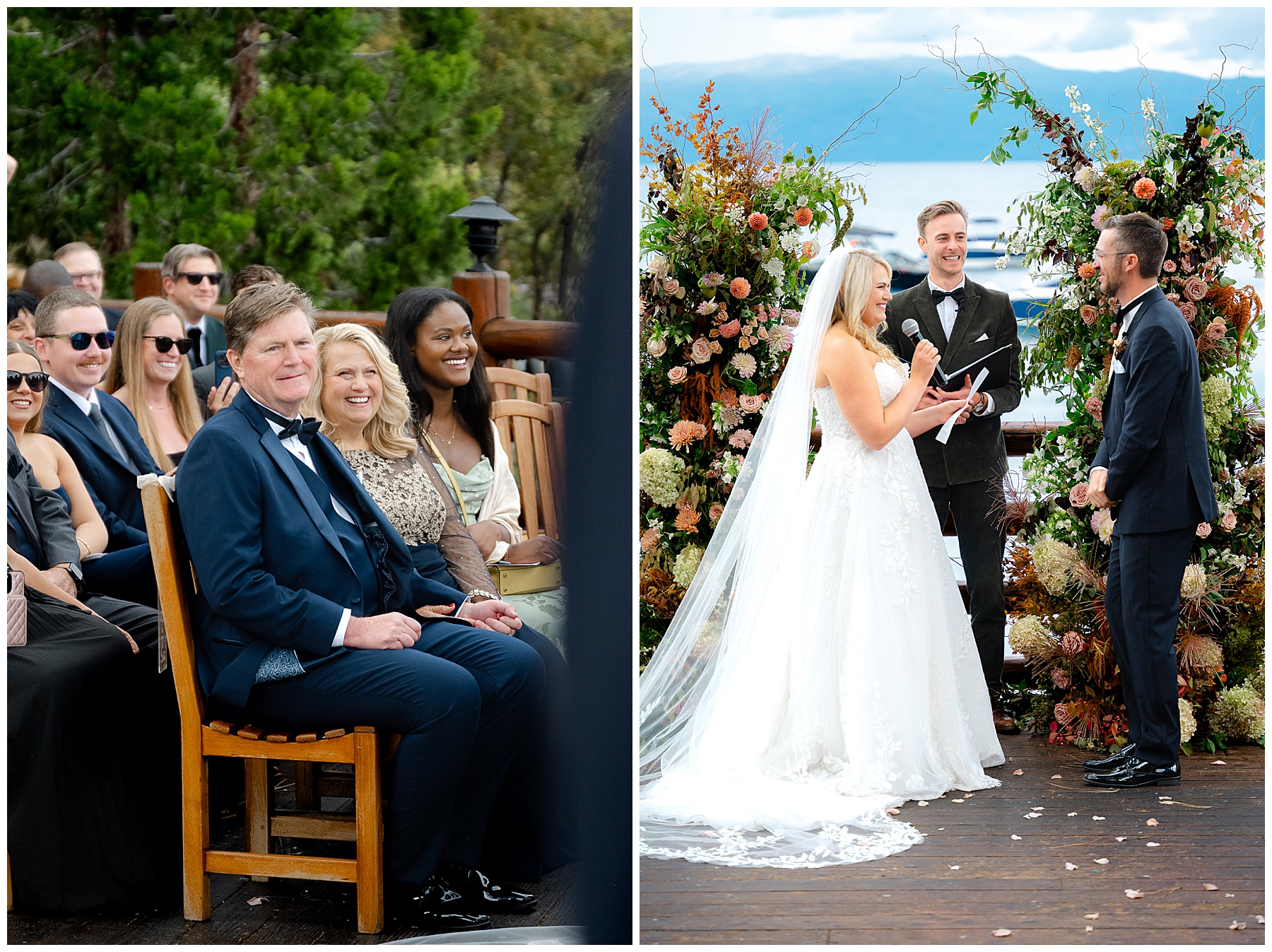Designed by Jalie and brought to life with the stunning work of Haven Florals, the vision embraced everything couples love about a modern, romantic Lake Tahoe wedding: an intimate al fresco ceremony by the water, lush seasonal florals, and thoughtful, personalized touches that made guests feel at home.